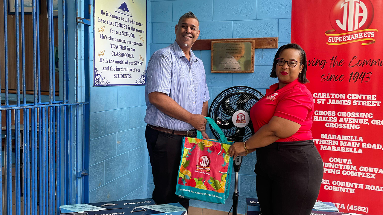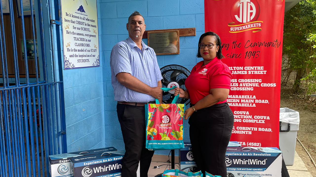 On Thursday 4th April, 2025, JTA Supermarkets, through its Hearts & Hands Outreach Committee, extended meaningful support to St. Paul’s Boys’ Anglican Primary School in San Fernando following a recent incident of vandalism that resulted in the theft of several critical items—including five fans, television screens, and a power washer.